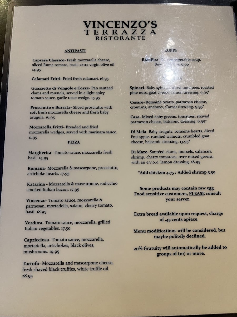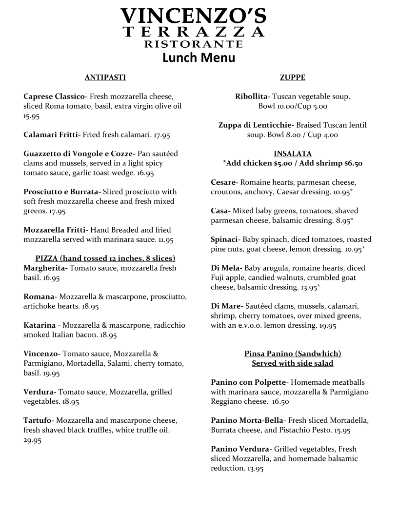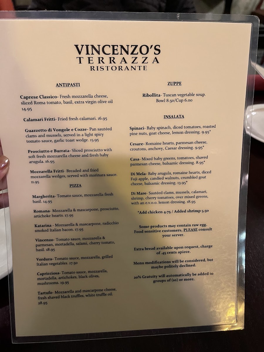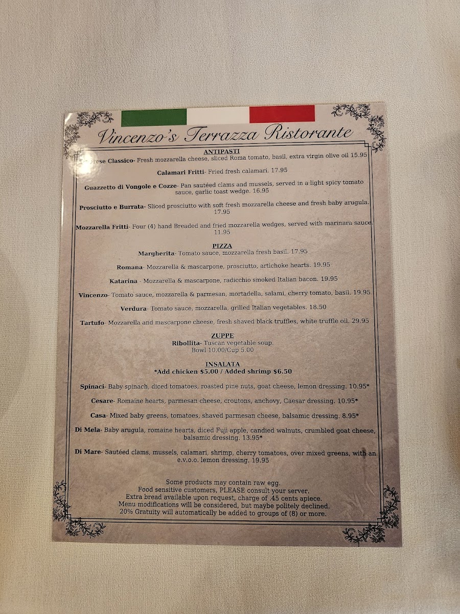 Whether it’s a casual dinner with friends or a special occasion, Vincenzo's Terrazza promises a feast that excites the senses and nourishes the soul. Be sure to make a reservation and prepare to be dazzled by both the food and the welcoming spirit of this amazing Italian tavern.